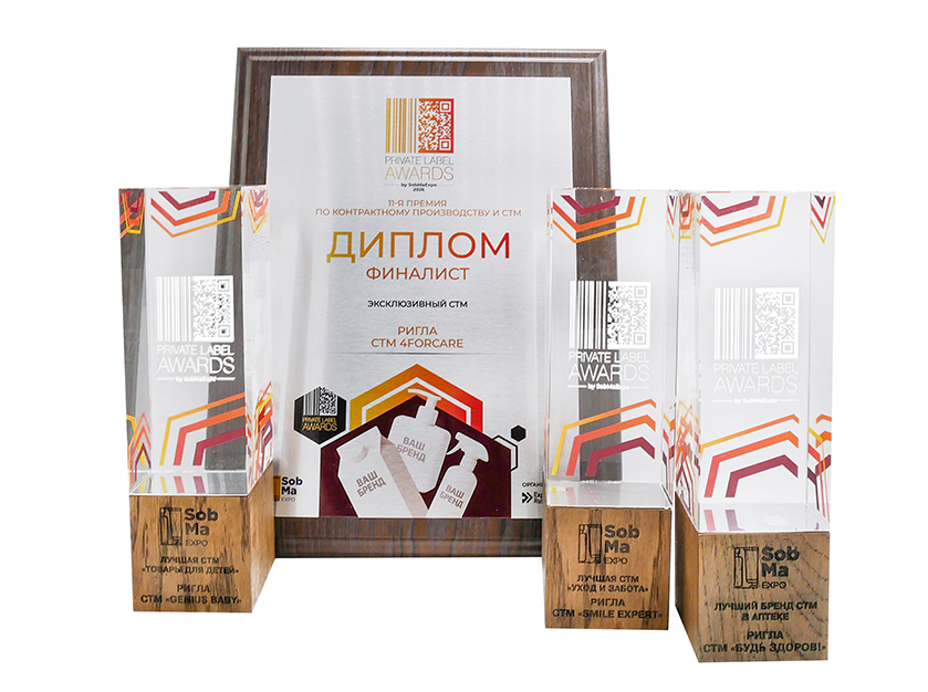 14 апреля на престижной IX ежегодной международной премии Private Label Awards by SobMa подведены итоги и обнародованы результаты лучших собственных торговых марок 2026 года. Собственные торговые марки аптек «Будь здоров!», входящих в аптечную сеть «Ригла», получили высшие награды в трех номинациях и диплом финалиста: